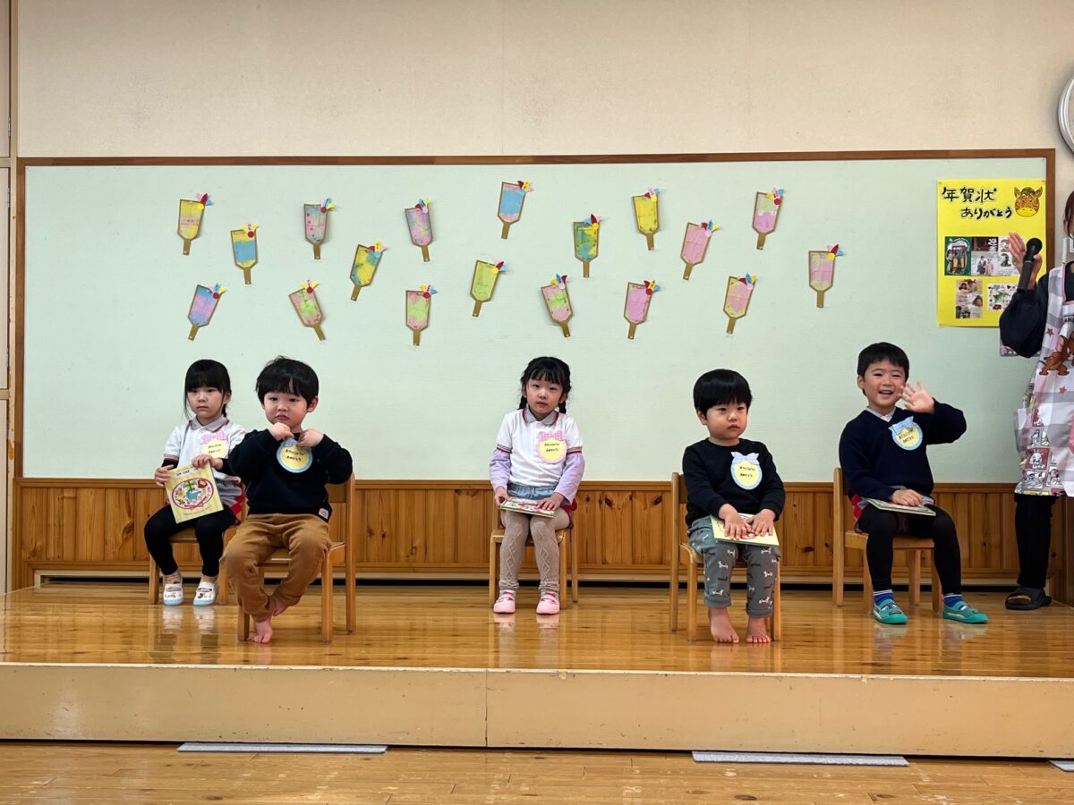 1月生まれ5名のお友達のお祝いをしました🎉緊張している様子の子もいましたが、小さいお友だちも以上児さんもしっかりステージに立つことができました🤩 今月のリーダーからの出し物は「福笑い」😆スペシャルゲストのひょっとこさんと一緒に「ひょっとこ」の顔を完 ...