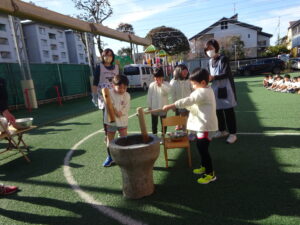 仕上げに年長の力持ち✊つきぐみさんがもちをつきます!