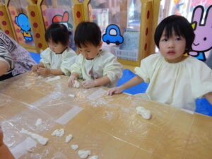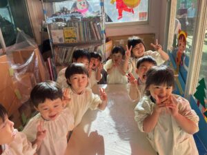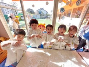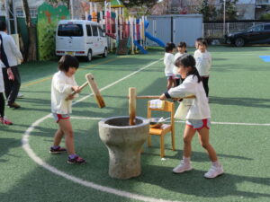 仕上げに年長の力持ち✊つきぐみさんがもちをつきます!