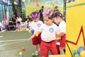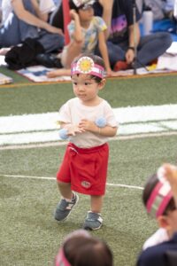 2歳児クラスのはなぐみさんは、かけっことダンシング玉入れに挑戦しました!